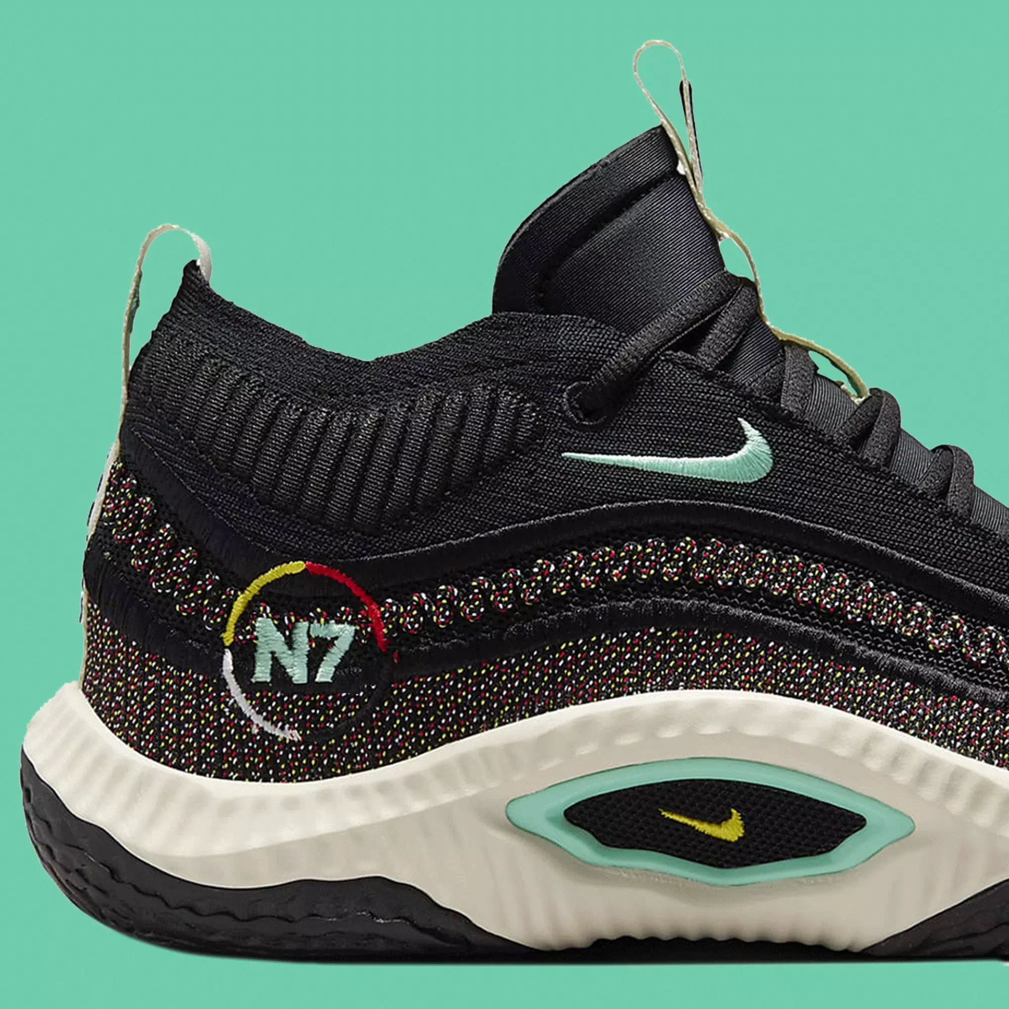 Headlining the collection is the Nike N7 Cosmic Unity 3, a basketball shoe with a secure, lightweight design for a low-to-the-ground feel, and the Nike N7 Benassi, a casual slide. Other key pieces include a range of apparel featuring the distinct N7 multicolor logo, continuing the line’s tradition of blending performance wear with cultural storytelling.